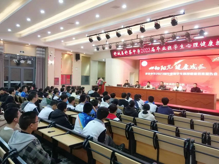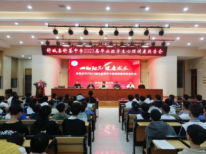 在距中考还有一百来天的日子里,为激发全体初三年级学生的信心,增强学生的学习意识,争创优异成绩,3月7日晚,舒茶初级中学为初三年级全体学生及老师在报告厅召开了主题为“心向阳光,健康成长”心理健康报告会。舒茶初中校长徐松泉等领导及初三年级全体班主任出席本次大会。