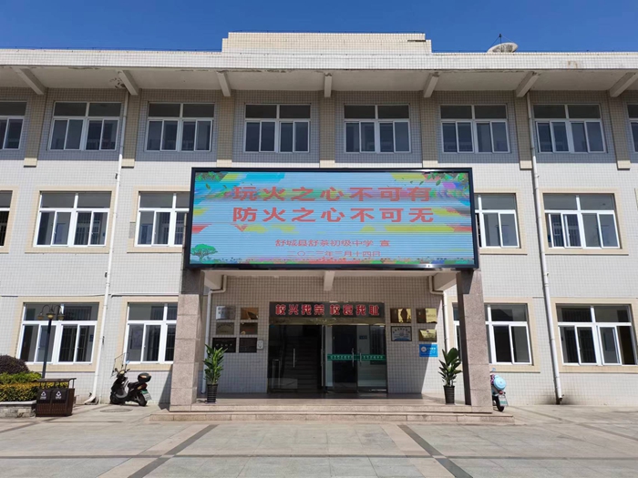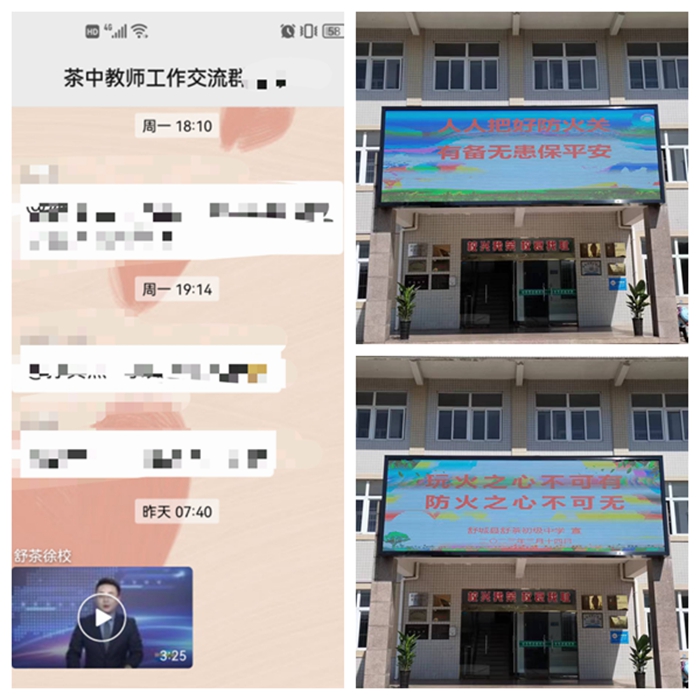 该校利用醒目的LED电子滚动式播放森林火灾警示标语,利用工作群向全校教职工宣传防火知识,播放森林防火教育视频。各班级进行“防火”主题教育活动,向学生宣传防火、灭火器使用知识等。