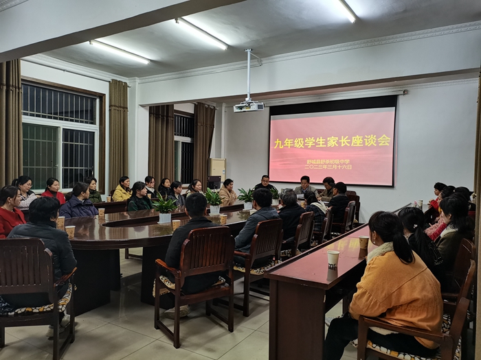 学生是学校的未来,孩子是家庭的未来。为了积极迎考,帮助九年级学生顺利毕业,3月16日晚,舒茶初级中学召开了九年级学生家长座谈会,共同探讨孩子未来的发展。各位家长积极配合,纷纷提前到达会场。舒茶初中校长徐松泉主持会议,副书记胡习才,教导处主任徐晨光参加会议。