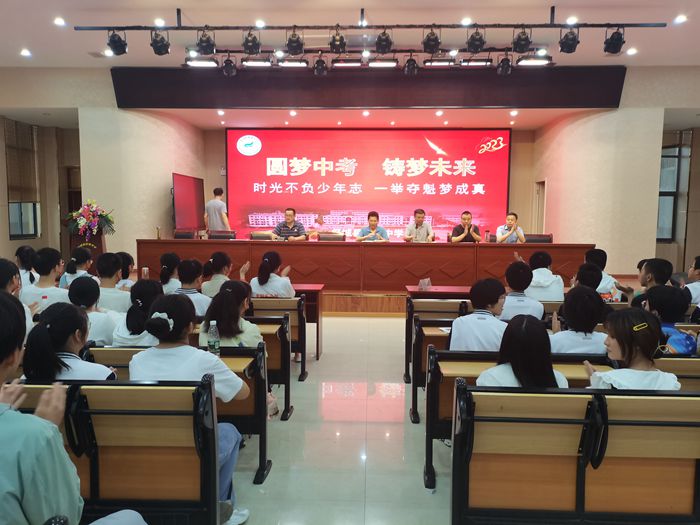 时光不负少年志,一举夺魁梦成真。为了助力全体初三学子顺利通过中考大关,到达胜利的彼岸,6月13日上午,我校召开了中考考前动员会。该会议由副书记胡习才主持,校长徐松泉,副校长赵印,教导主任徐晨光等领导及全体班主任参与会议。