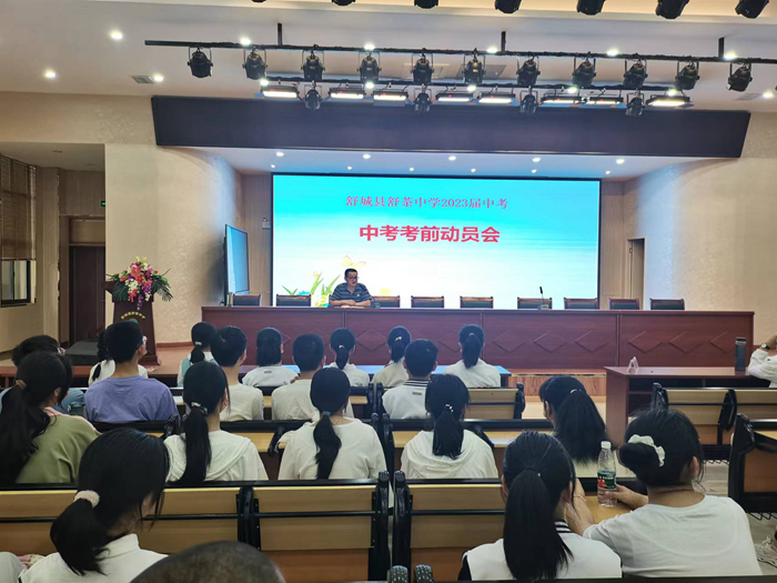 会议开始,徐主任带来一场考前动员会专题讲座,从中考考程、注意事项、心态辅导等方面展开。最后胡书记代表全体师生为初三学子祝福,祝愿同学们旗开得胜,马到成功。三年磨一剑,六月试锋芒。为了决战中考,我们已经准备了三年,一定要稳定发挥,考出最理想的成绩。为母校,更为自己交出一份满意的答卷。