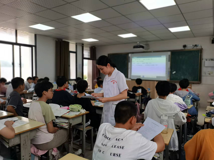 该院医生们对七年级学生进行全面健康体检,通过询问了解疫苗接种情况,并为没有接种疫苗的同学及时接种疫苗;通过量身高、称体重、测腰围等了解身体状况,通过测视力、查听力、看牙齿等检查五官,用听诊器筛查肺结核病情况,并发送调查问卷以更加详细的了解学生健康状况。