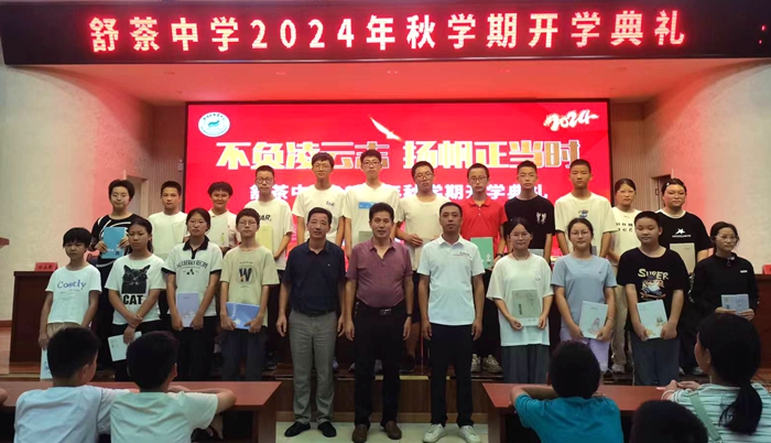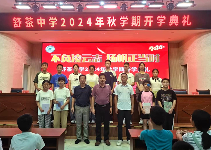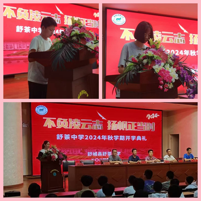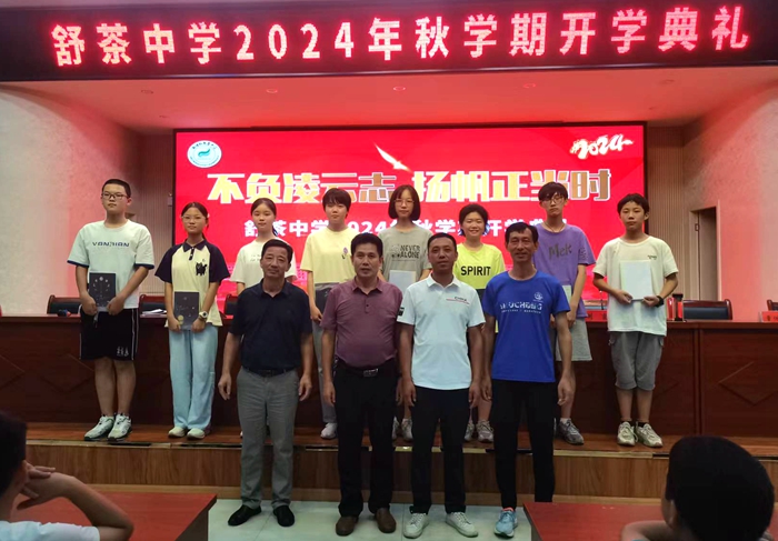 开学典礼第二项,由教导处主任徐晨光发表讲话。徐主任简短的话语却令在场的每一位师生感到振奋人心。在全体师生的努力下,我校培养了数位成绩优异的毕业生,有20名同学升入舒城中学,更是有59名同学升入省级示范高中。在同学们一阵又一阵的掌声中,徐主任又向所有表现优异的同学表示祝贺,并颁发奖品。